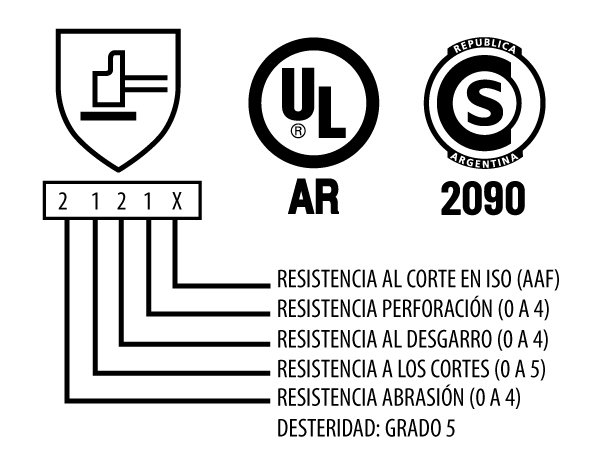 Instrucciones de uso: consulte con el responsable de seguridad e higiene de su empresa para corroborar el correcto uso del artículo seleccionado. •Verificar que los guantes no presenten defectos, grietas o desgarros antes de utilizarlos. De lo contrario utilizar guantes nuevos. •Colóquese los guantes con las manos secas y limpias. •Sólo se garantizan las propiedades de protección de estos guantes si mantienen las características originales de fabricación. Los niveles de resistencia Mecánica están aplicados a la palma únicamente.