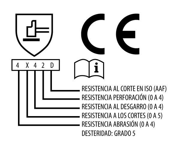 NORMATIVA CE (Nivel D en ISO): Norma EN 420 + EN 388:2016
